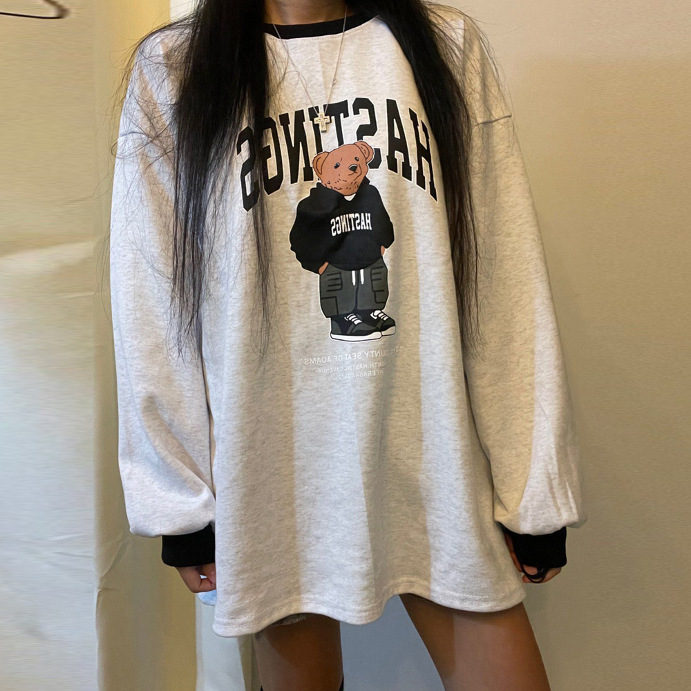빅사이즈 오버핏 곰아저씨 긴팔 맨투맨티셔츠