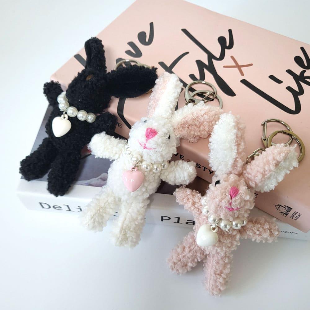 (당일발송) 하트진주목걸이 블랙핑크화이트토끼 키링 미니인형 키링 열쇠고리 가방고리