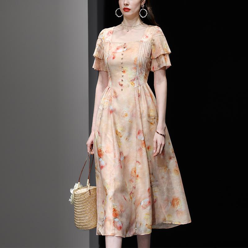 콩단추 스퀘어넥 핀턱 명품 원피스 여름 휴양지 5월 결혼식 하객룩 경성의복 40대 중년