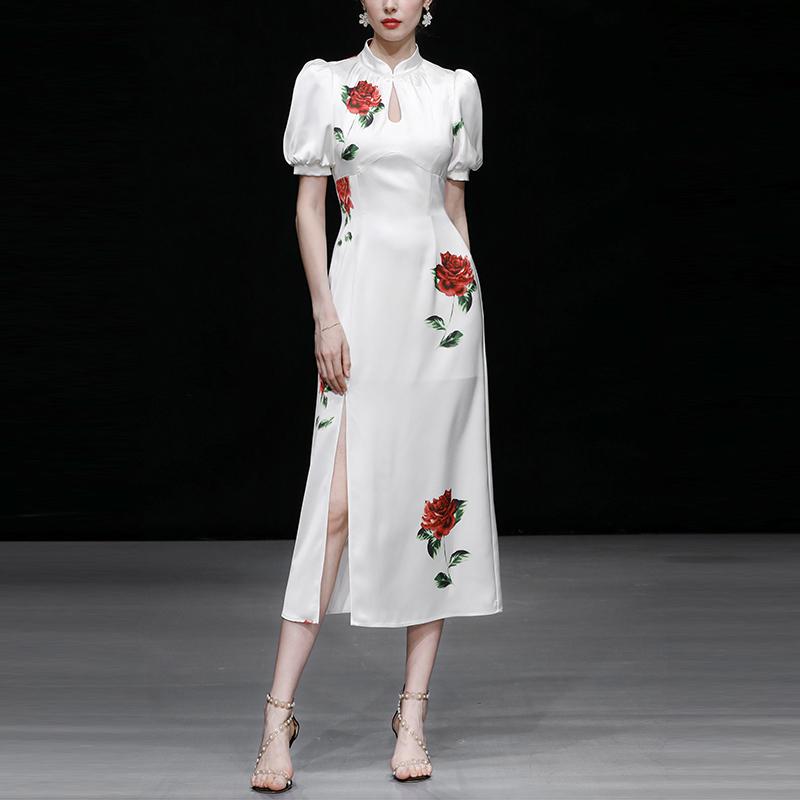 경성의복 장미 트임 화이트 명품 원피스 퍼프 여름 휴양지 개화기의상 빅사이즈