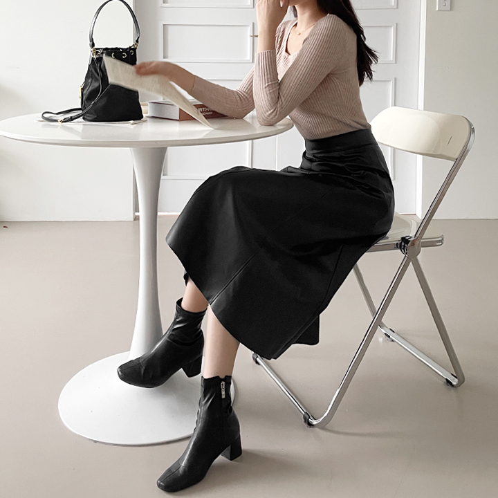 [🚀오늘출발/예쁜핏💙] 뒷밴딩으로 편안하고 예쁜 A라인 플레어 레더 롱 스커트 가죽 롱 치마
