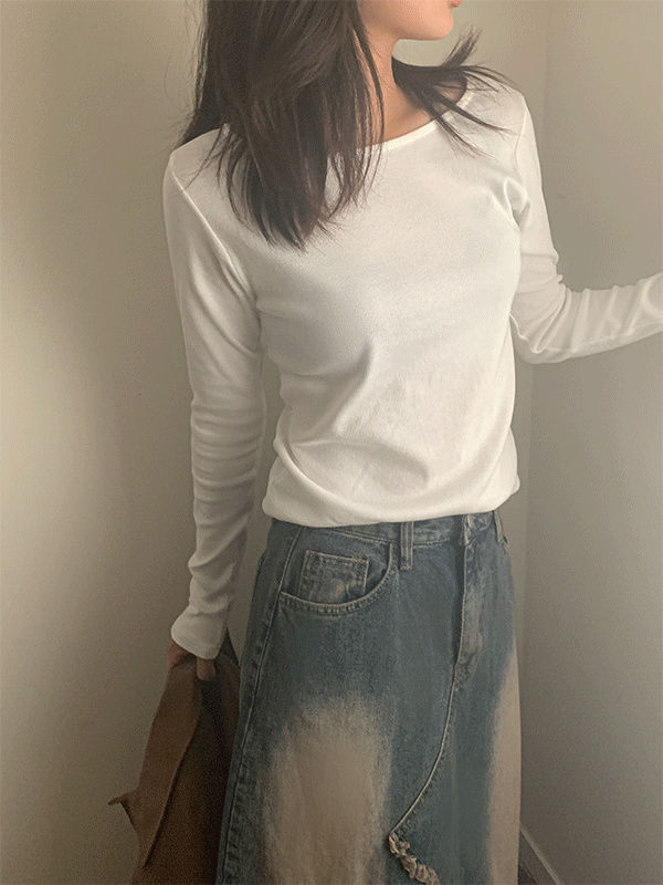 [핏예쁨/강추] 라무네 여리 보트넥 골지 긴팔 티셔츠