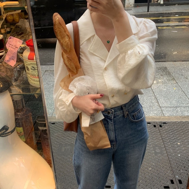 🍂가을 하객룩💕URBANE MADE💕 모네 카라 새틴 셔링 블라우스 퍼프 블라우스 (당일 3c) 하객룩블라우스/격식룩/돌잔치룩