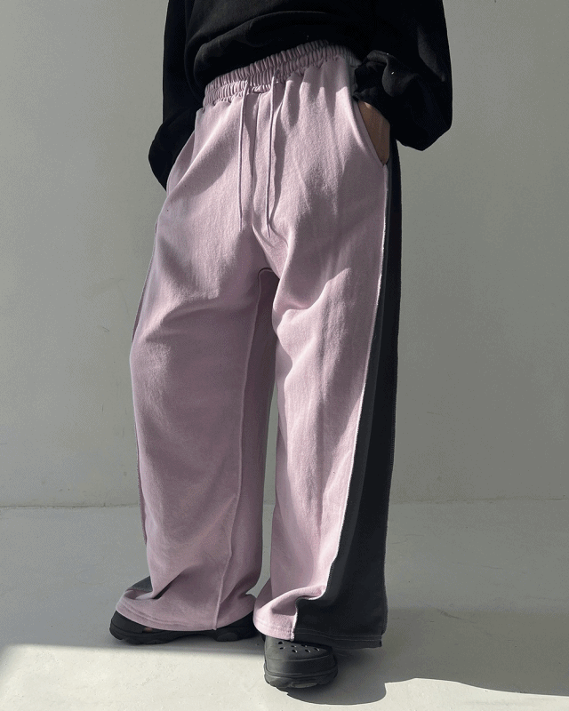 코멧 롱 와이드핏 사이드 주름 배색 데끼 쭈리 밴딩팬츠