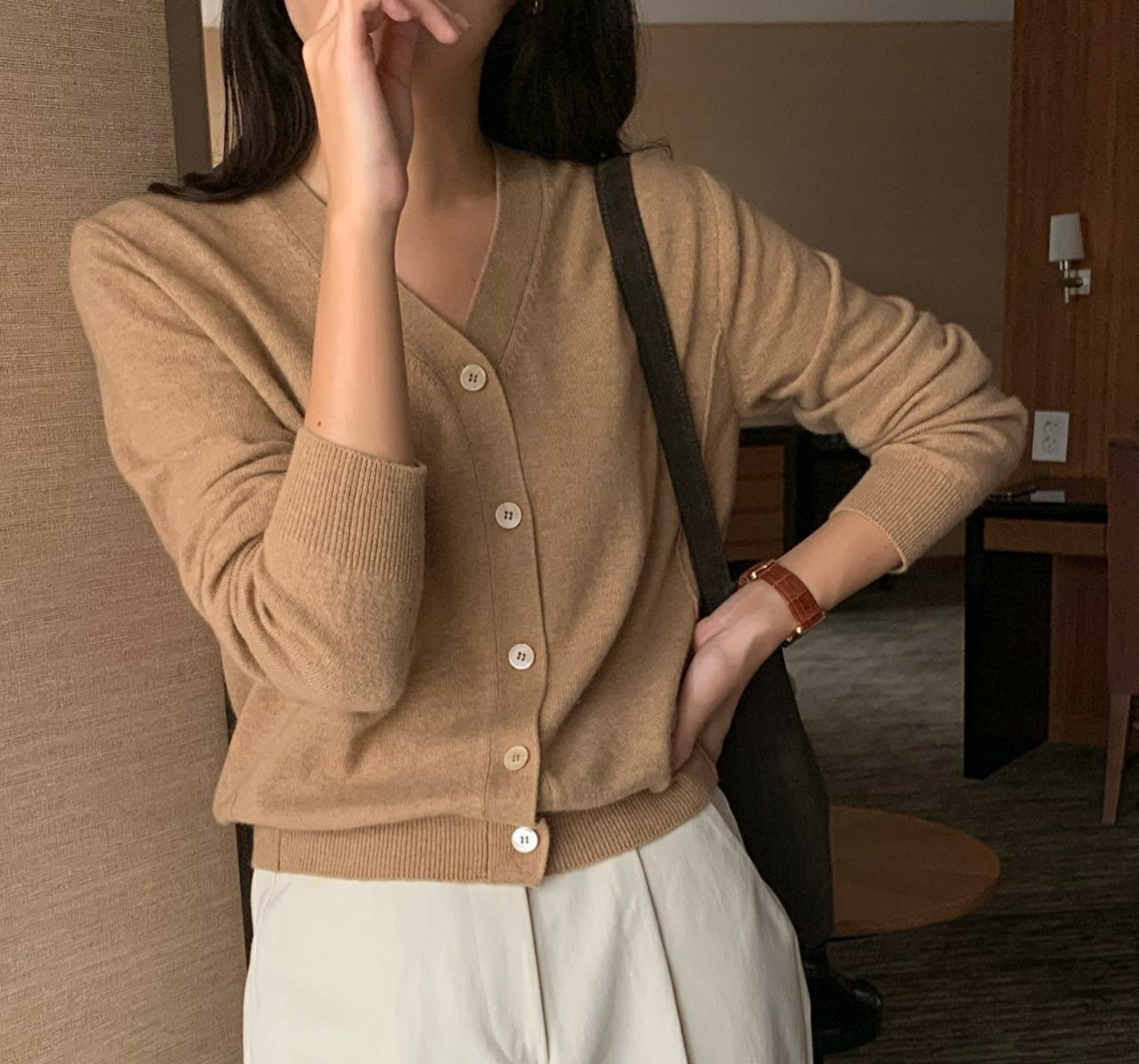 여성 브이넥크롭가디건 기본가디건 모아니 어텀V가디건