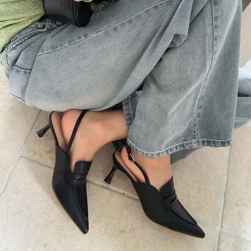 [RP3049] 클로즈 스틸레토 페니 슬링백 힐천연소가죽6cm