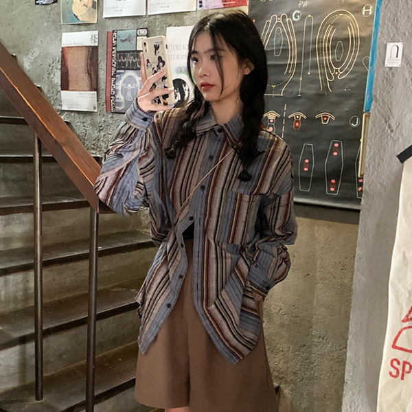 [3만장돌파🏆][직진배송🚚] 데어 스트라이프 셔츠 (FREE) (간절기셔츠-긴팔셔츠-루즈핏셔츠-체크남방-레이어드-박시핏-줄무늬-단가라-블라우스-사계절-빈티지-개강룩-유니크)