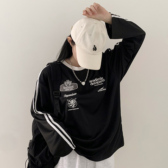 [44-77/빅사이즈] 블러드 배색 매쉬 긴팔 맨투맨 [스트릿/레이싱/캐주얼/블록코어룩/y2k/유니크]