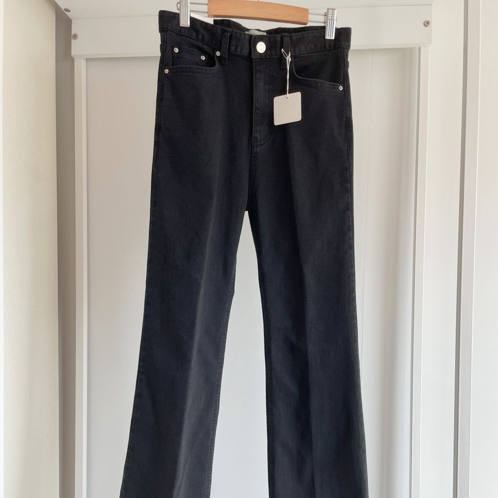 [기모] 블랙 레직기 데님 팬츠 롱 청바지 하이웨스트 세미부츠컷 일자 바지