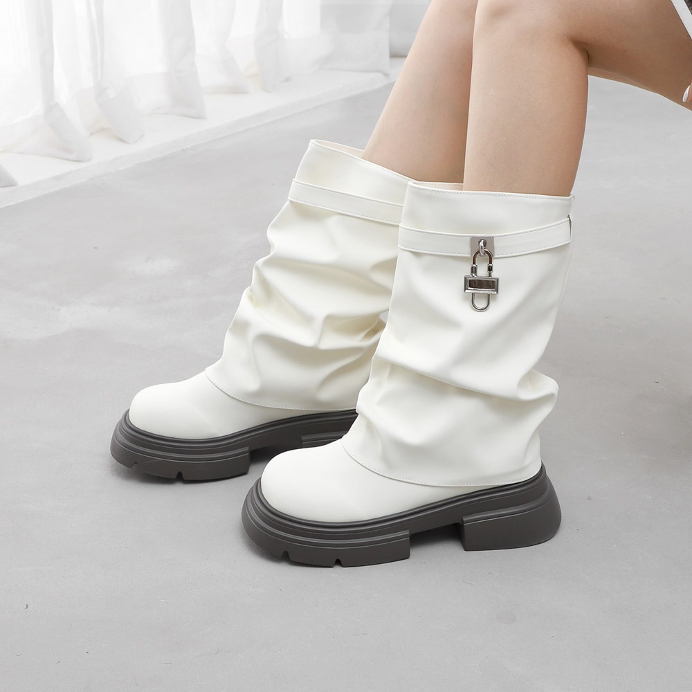 ◆실버 락장식 레그워머 통굽 미들 부츠(5.5cm) 11596