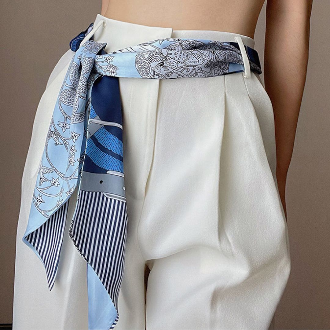 데일리 여성 고급 쁘띠스카프 실크 방도 양면 리본 머플러 허리띠 가방 머리끈 장식
