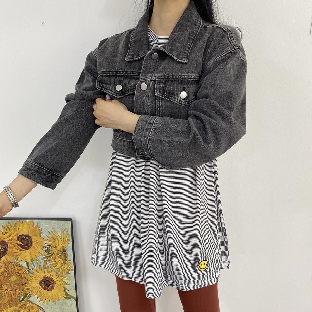 크롭청자켓 여성 크롭 보이핏 숏 흑청 데님 자켓