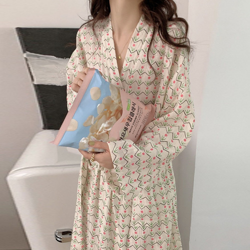요루면 로브 가운 잠옷 여성 긴팔 순면 나이트 목욕 수면 가운 홈웨어