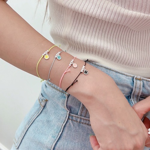 silver925.프리사이즈 매듭 조절 스마일 장식 스트랩 끈 팔찌(4color)