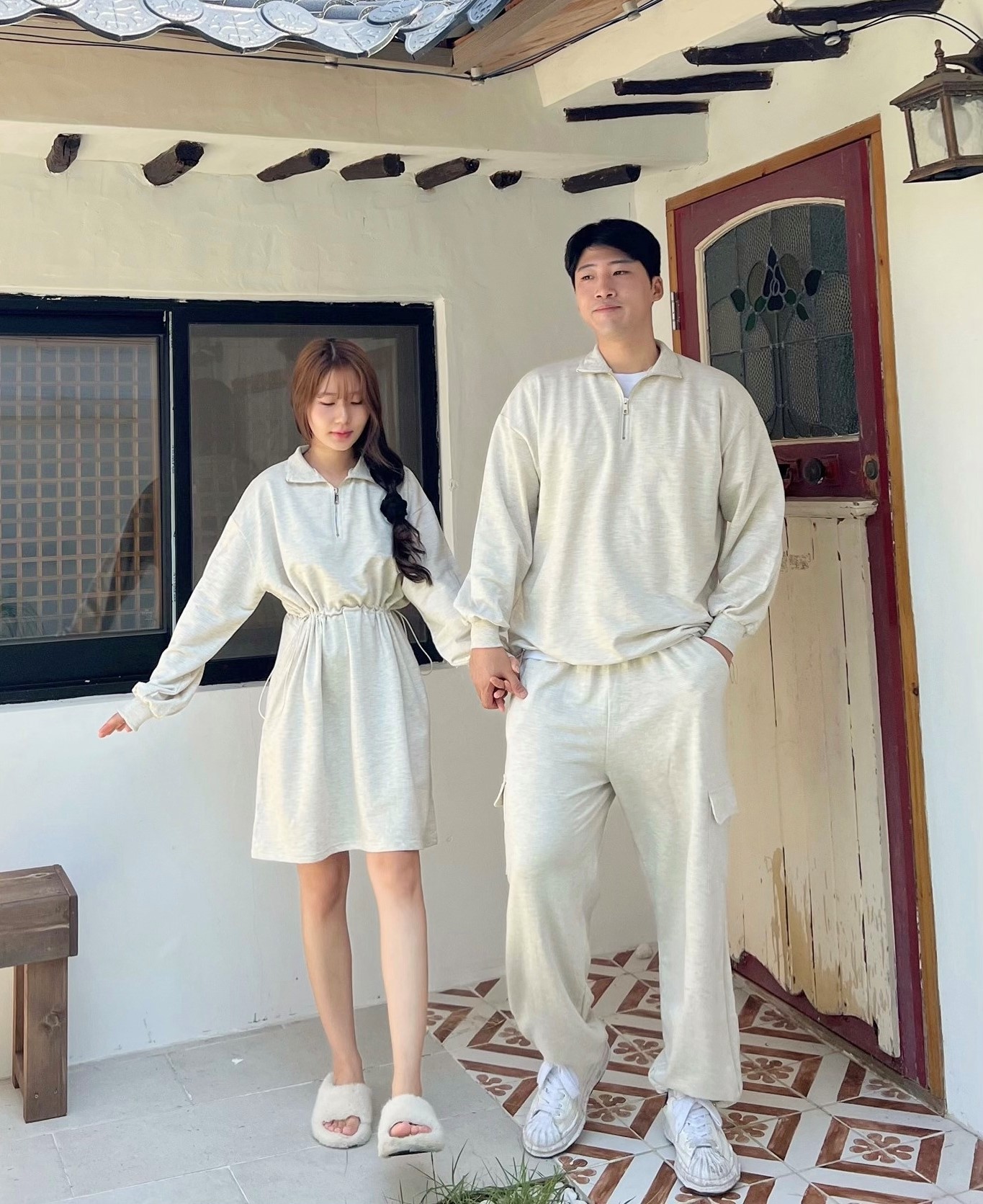 4컬러/하프 반집업 쭈리 미니 원피스 맨투맨 카고팬츠 세트 커플룩 시밀러룩 빅사이즈