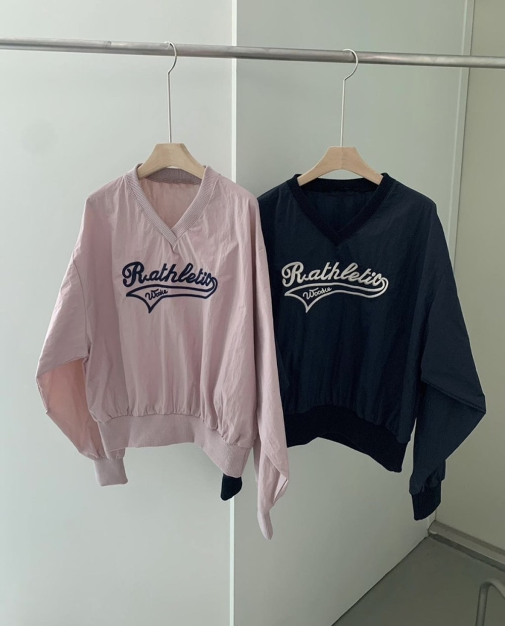 [바스락원단!/블록코어]레이티 나일론 브이넥 루즈 맨투맨(2col)