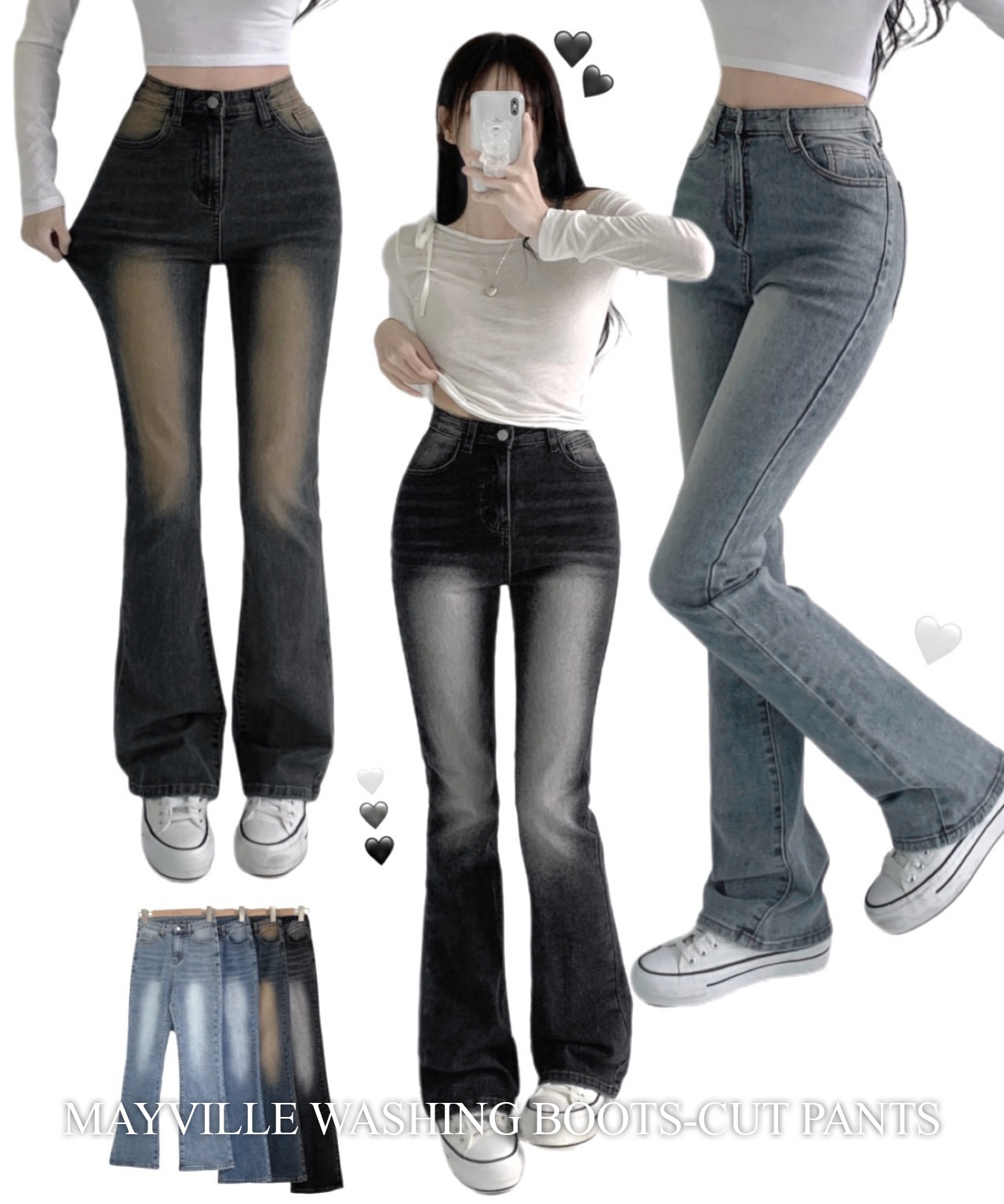 [몸매보정핏💓/기장선택/~2XL] 메이빌 쫀득 워싱 슬림핏 하이웨스트 세미 부츠컷 빈티지 데님 팬츠 청바지 키작녀/키큰녀/빅사이즈/데님팬츠/슬림핏/워싱팬츠/빈티지워싱/부츠컷청바지