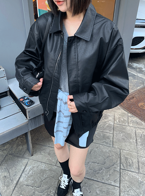(2color)어텀 하프 롱 오버핏 레더 자켓