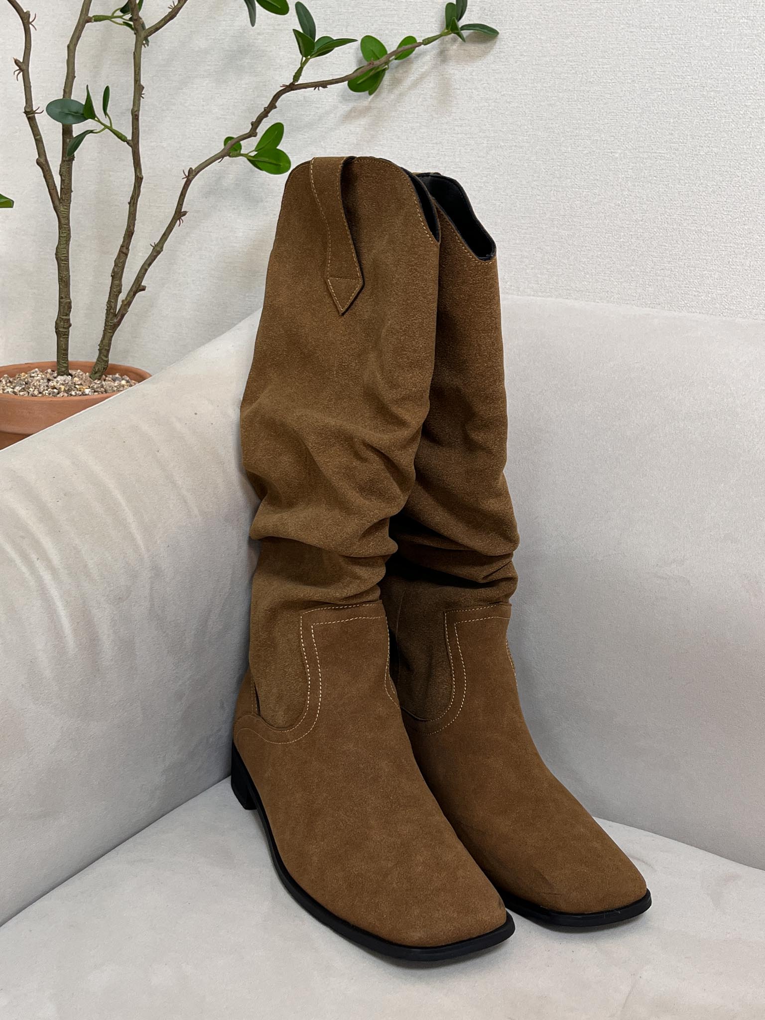 [통넓은/스웨이드]스퀘어 각코 링클 주름 셔링 웨스턴 부츠 3color