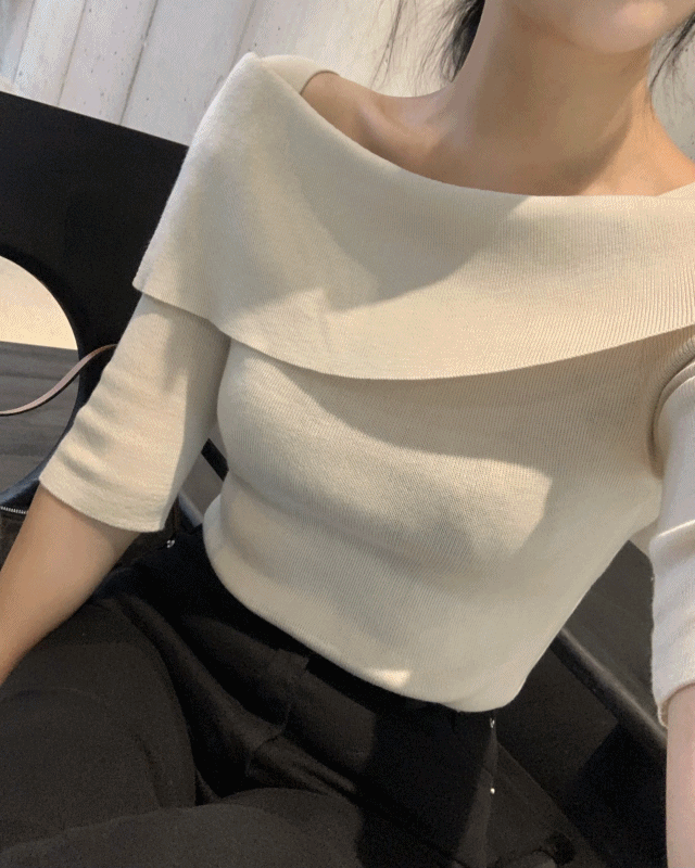 세브론 언발 스퀘어 오프넥 7부 니트 티셔츠 (3 color)