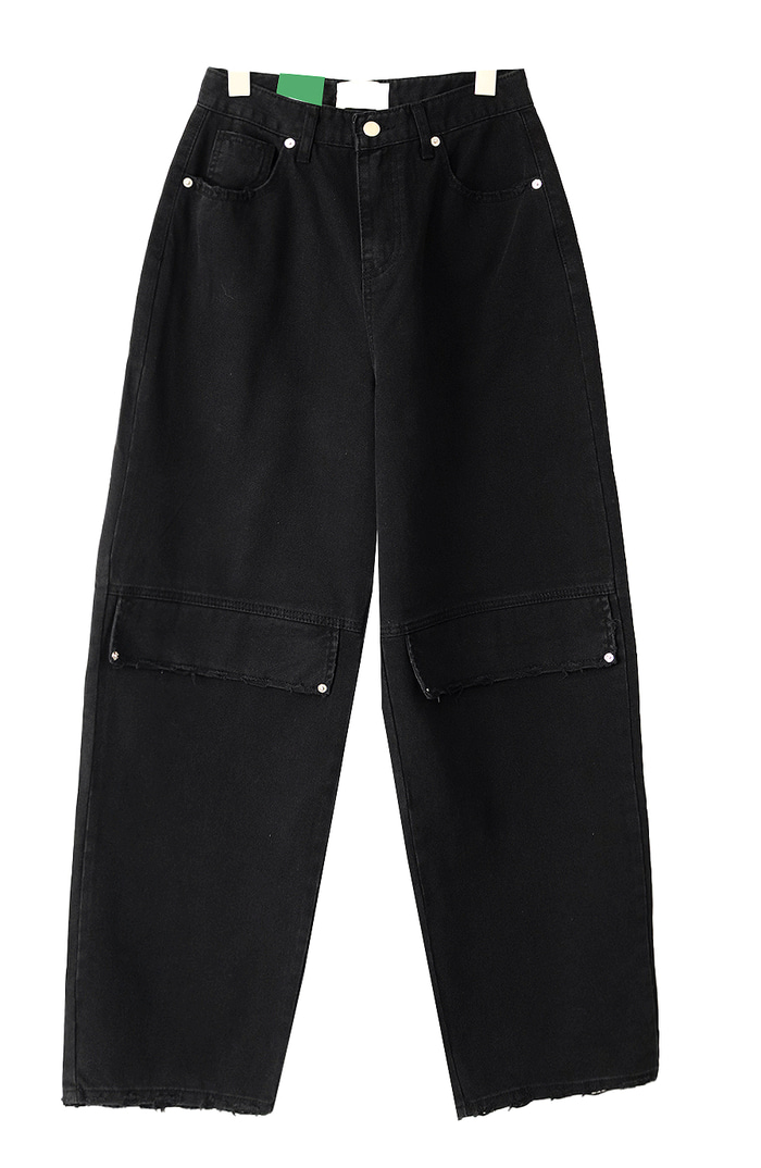 블록 백포인트 버클 비죠 디테 와이드 코튼팬츠