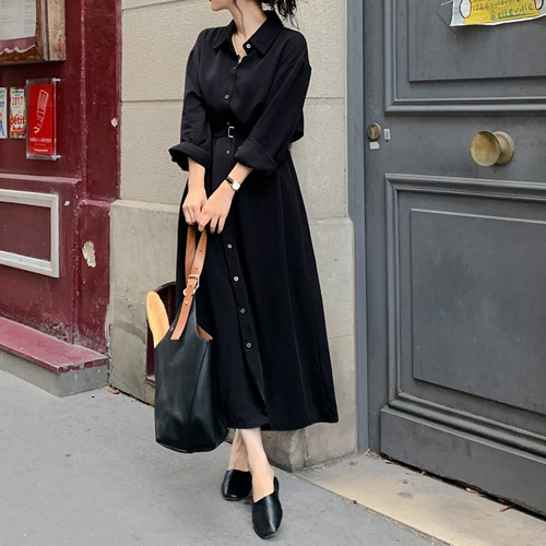 [🔥라스트특가60%][MNLB] 오페라 텐셀 벨트 셔츠 롱 원피스