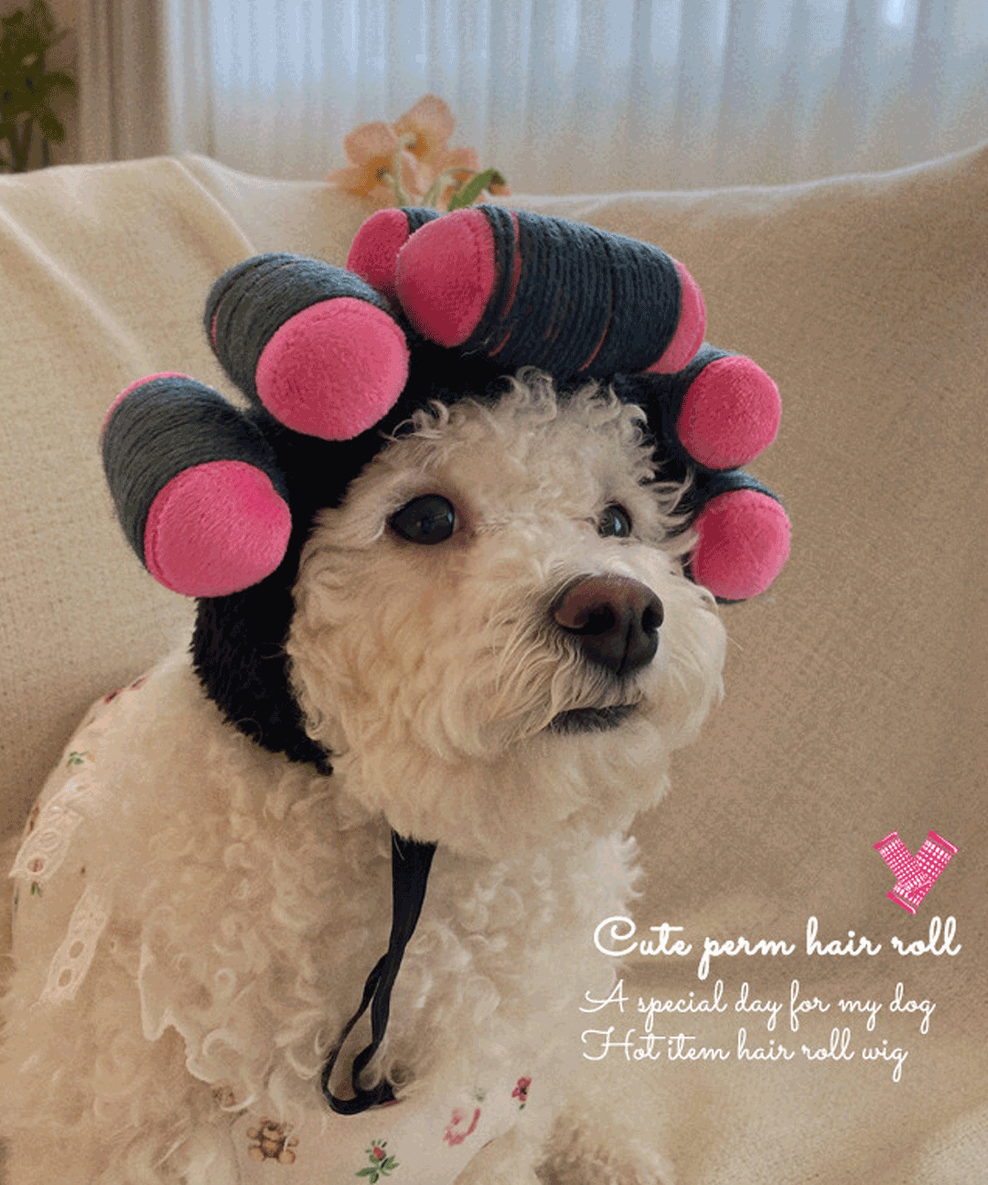 강아지 헤어롤 미용실 파마 가발 할로윈 코스프레