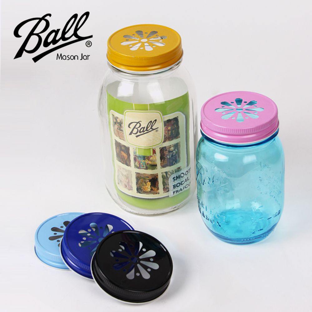 볼메이슨 손잡이유리병 볼메이슨자 볼 메이슨 데이지 빨대홀 컬러 레귤러 뚜껑 1p 밀폐유리병 과일청유리병