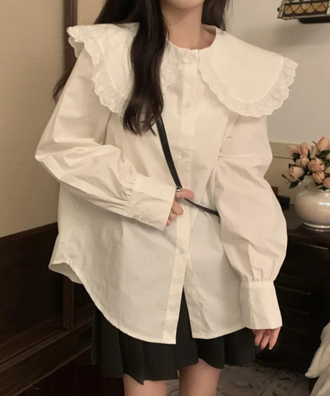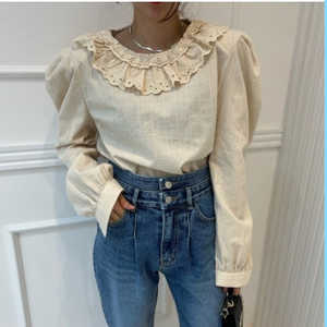 프릴 레이스 세일러 카라 가을 여성 블라우스