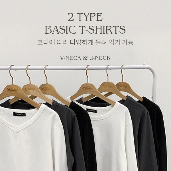 [2타입][보풀down/베이직템][MADE] 마인즈 U넥/V넥 탄탄핏 긴팔티셔츠(44~110) (기본면티-빅사이즈티셔츠-체형커버-군살커버-슬림긴팔티-무지티셔츠-베이직아이템-베이직핏)