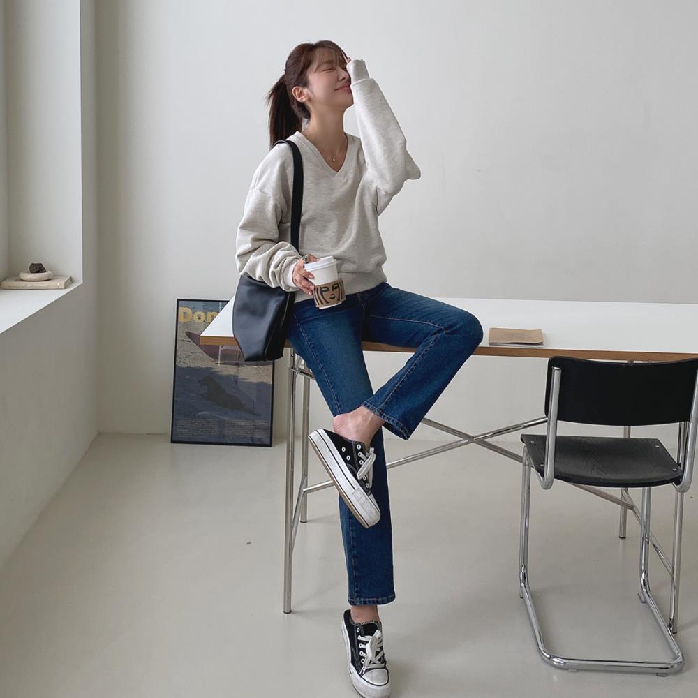 여자 진청바지 슬림 스트레이트진 스판 팬츠