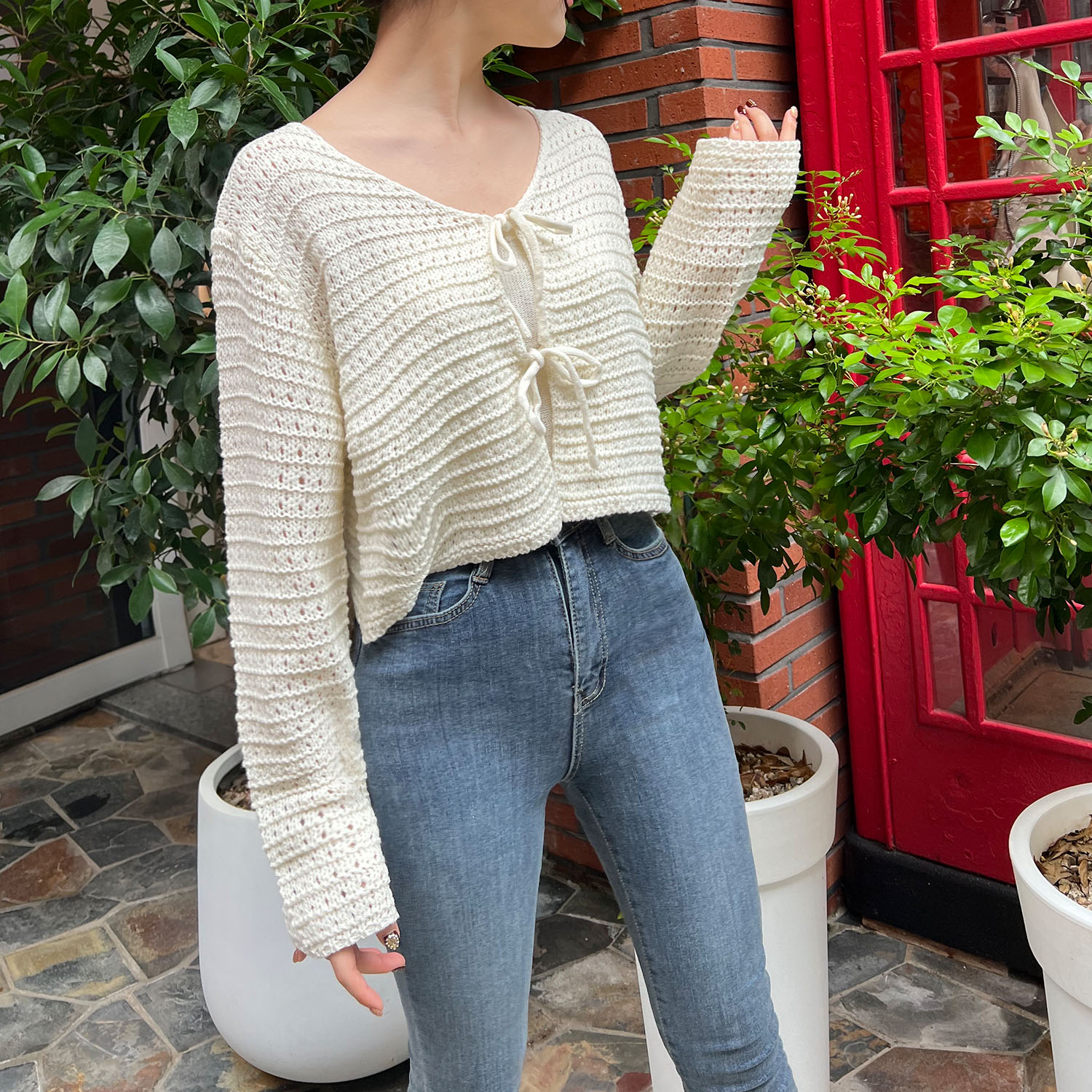[니트탱크탑!/세트템] 라이 스트링 펀칭 리본 가디건 탑 세트