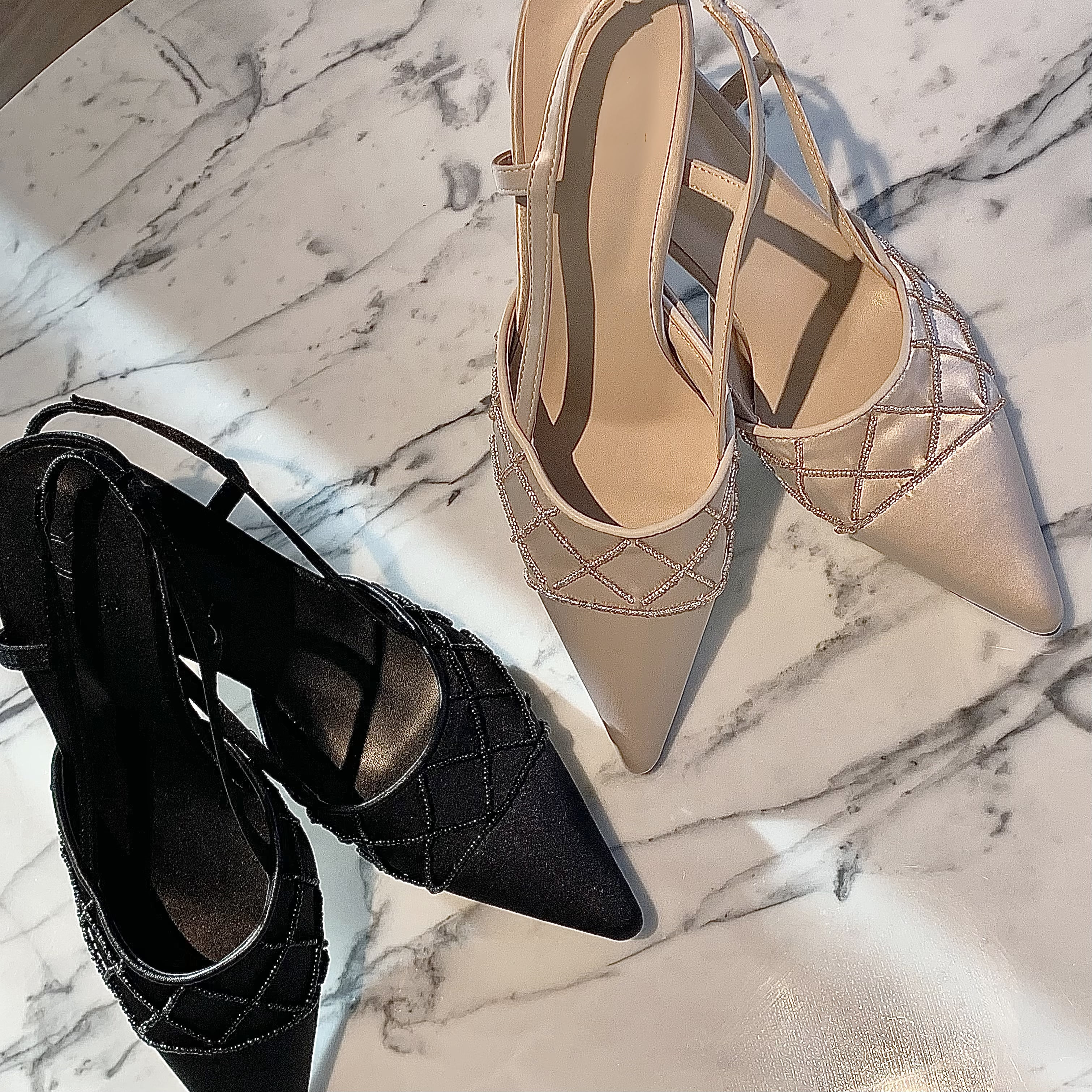 새틴 비즈 스틸렐토 슬링백 힐 (2color)