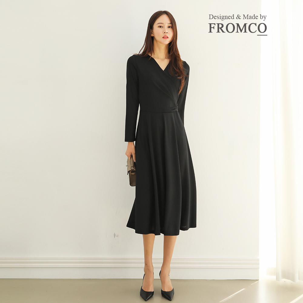 [자체제작/차르르한핏] 블랙원피스 브이넥 랩 셔링 맥시 롱원피스 ~77/빅사이즈 FRC121