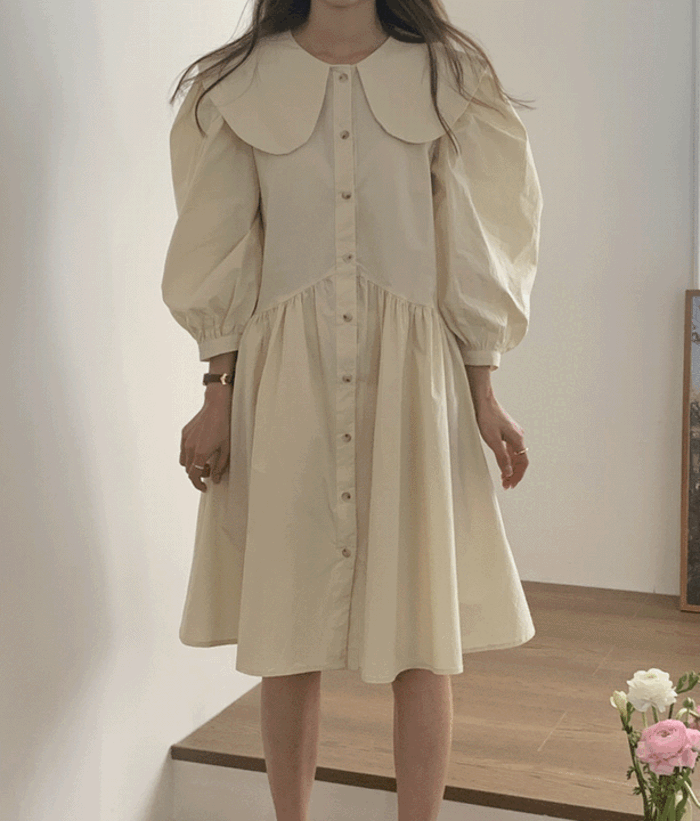 니드어 둥근카라 버튼 코튼 미니 원피스