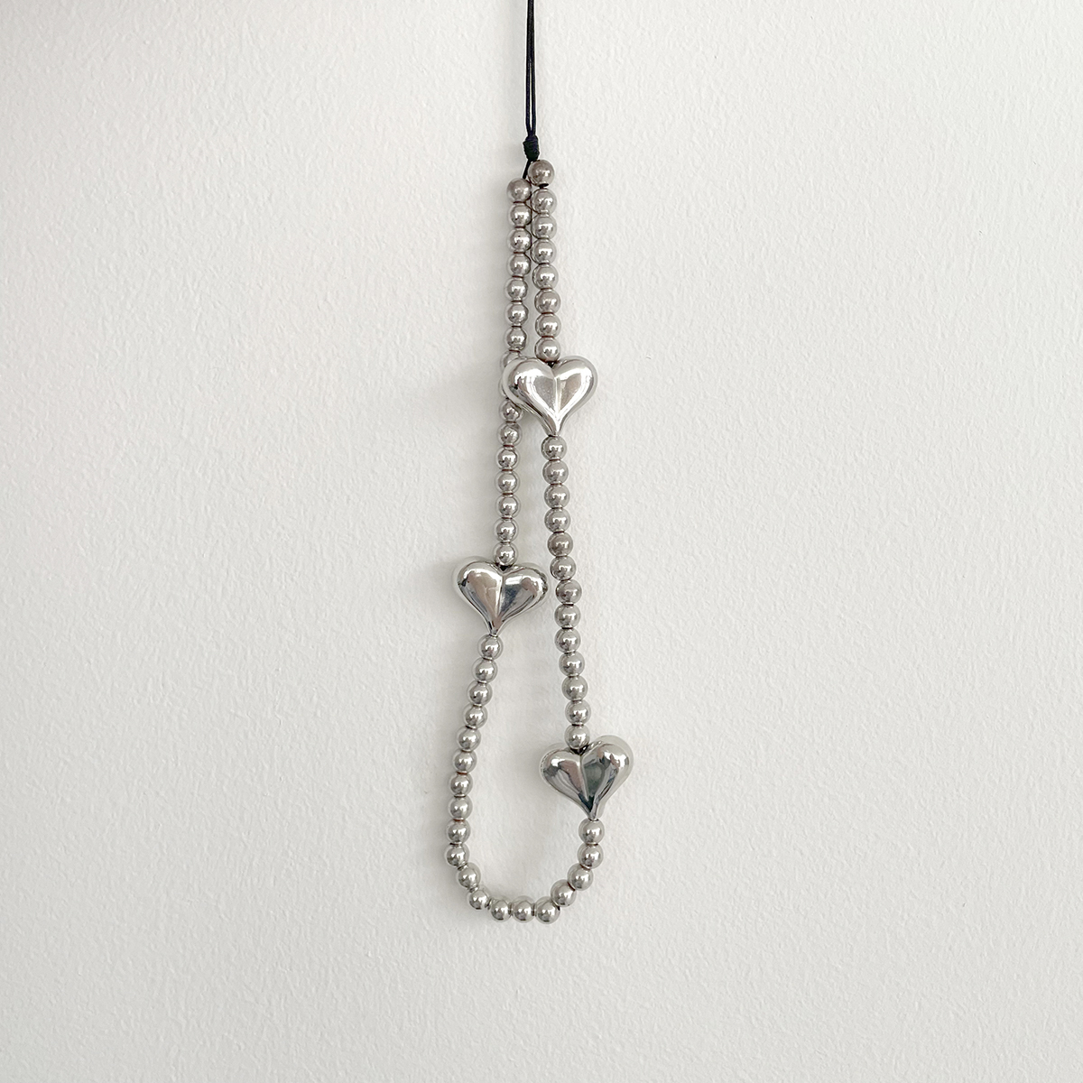 닷닷잡화점 실버 하트 포인트 볼 비즈 스트랩 핸드폰 폰스트랩 키링