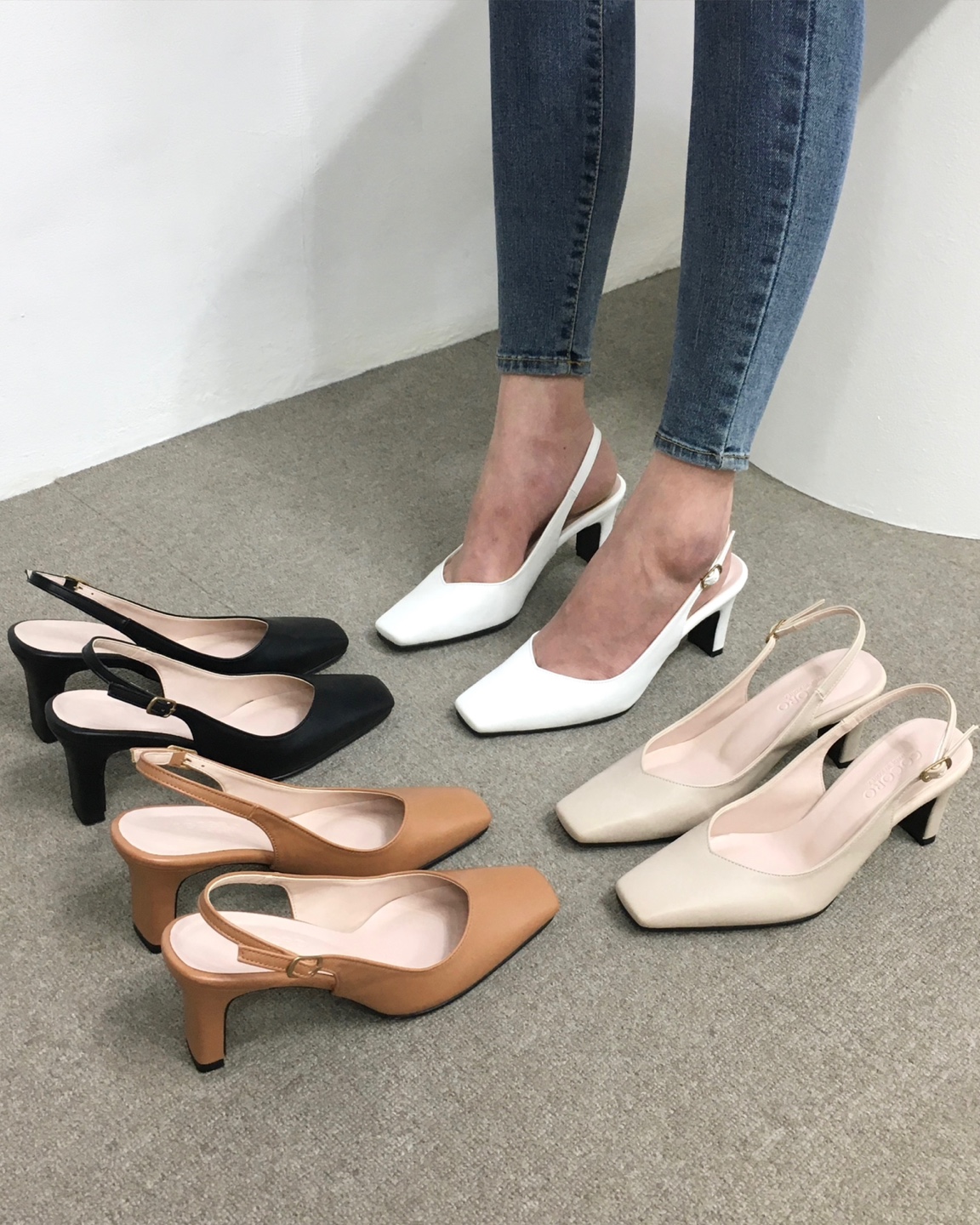 [당일배송/국산수제] 슬림 스퀘어 브이컷 쿠션 슬링백 힐 220mm~260mm