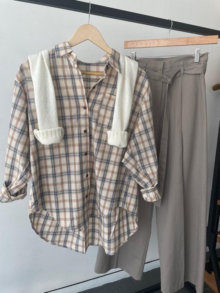 간절기 루즈핏 체크 카라셔츠