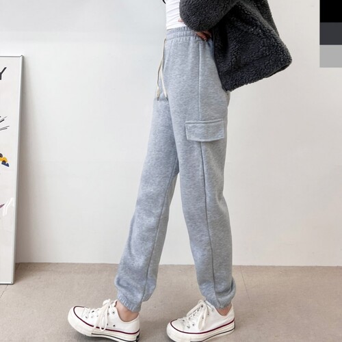 건방빠지 츄리닝 트레이닝팬츠 밴딩 여자 기모면 페이크 카고 트레이닝바지