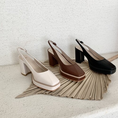 클래식 가보시 투톤 9cm 통굽 스퀘어토 슬링백힐 / 3컬러