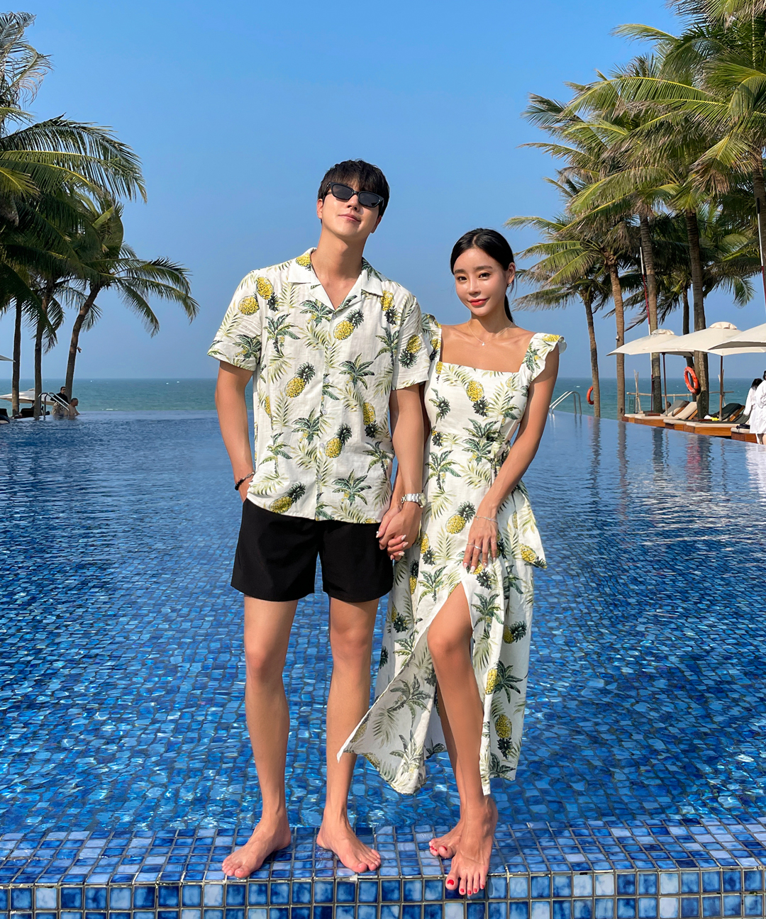 [MADE BY 비바럽]아임 파인 허니문 시밀러 커플룩[여름/원피스/프릴/랩스커트/트임/민소매/스모크/밴딩/바캉스/휴양지/신혼/커플/시밀러/비치웨어/허니문] OP19777F