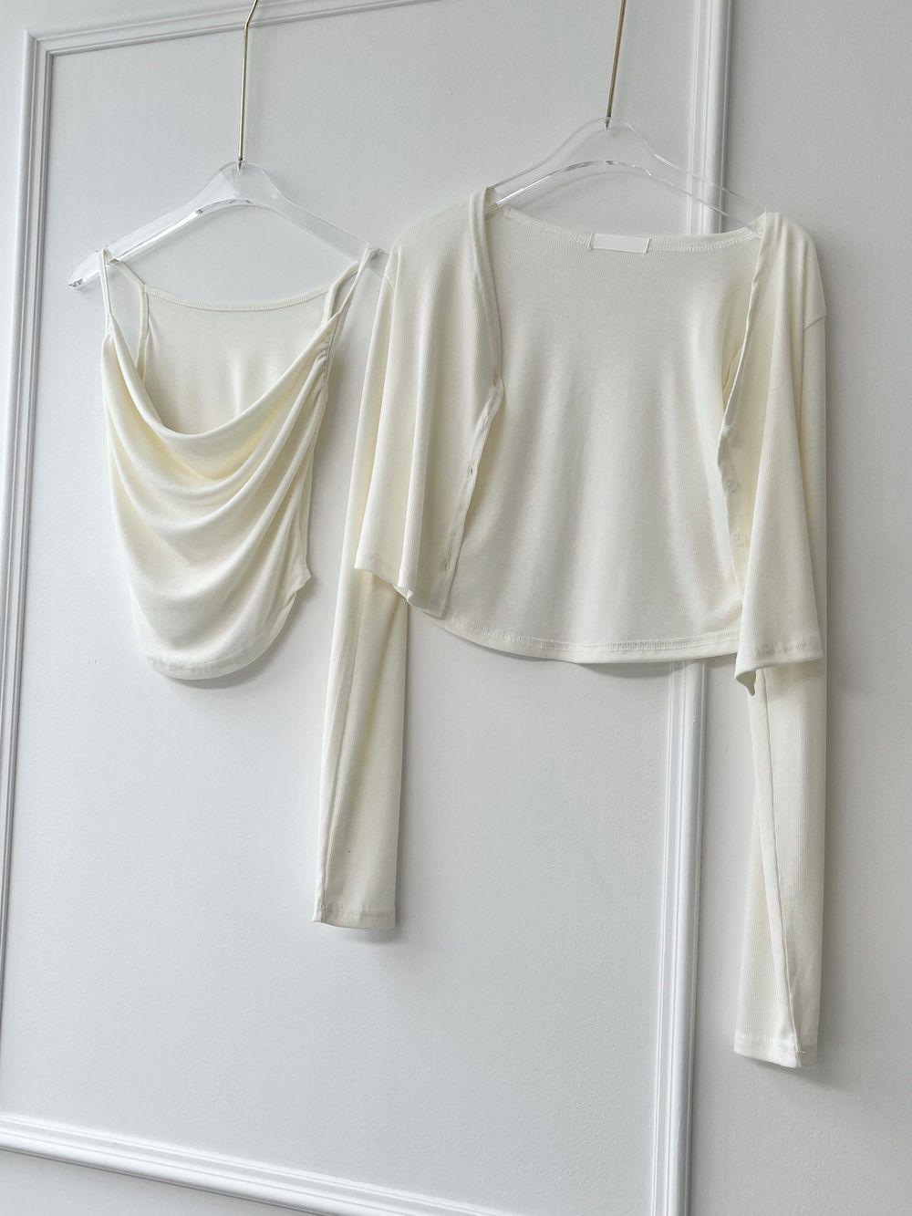 [촤르르/비침없는] 스판 셔링나시 크롭 단추가디건 세트 3컬러