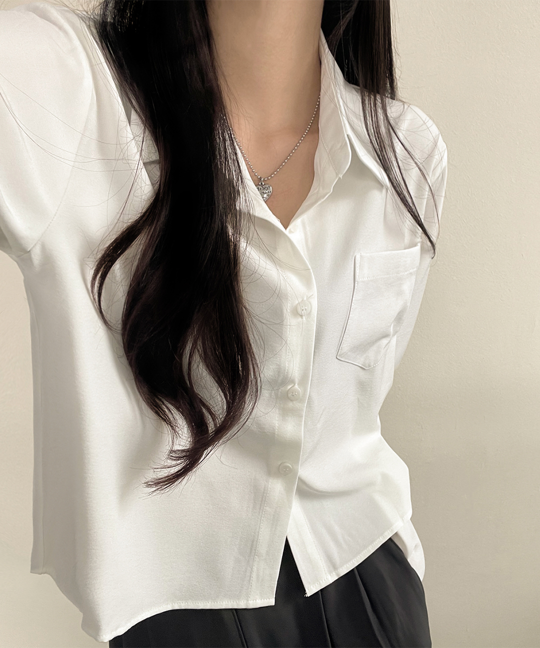 [포켓ver/차르르~/고퀄] 찰랑찰랑 블라우스같은, 사계절 세미크롭 무지 포켓 긴팔 카라 셔츠 남방 6color