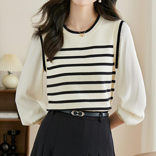 루디거 레이어드 배색 단가라 니트티