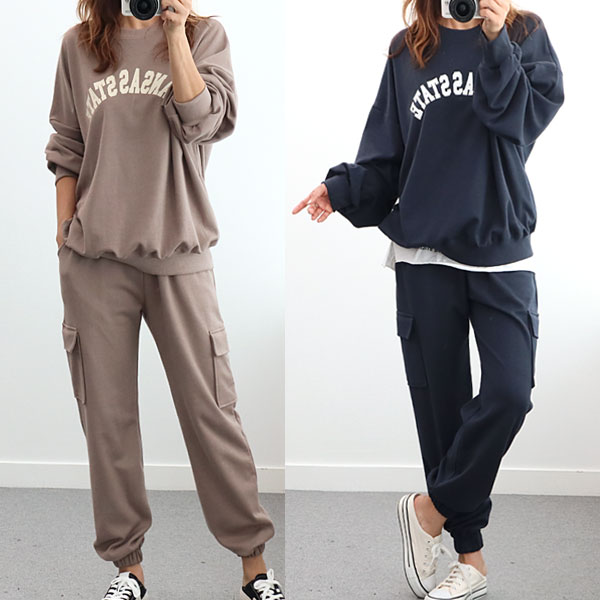 여성 칸 맨투맨 트레이닝 세트 츄리닝 운동복 홈웨어 헬스복 상하의 조거팬츠 세트