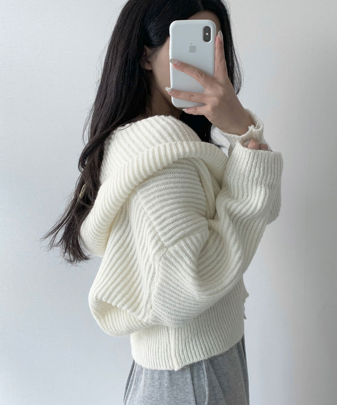 [폭닥💭/아방핏] 세일러 단추 후드 니트 가디건 가을 겨울 루즈핏 오버핏 크롭가디건