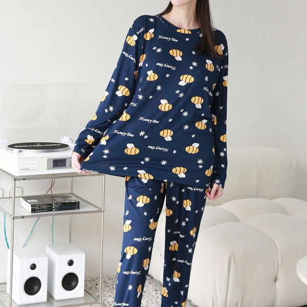 부드럽고 편한 꿀벌 잠옷 세트 홈웨어 파자마 [곤색/아이]