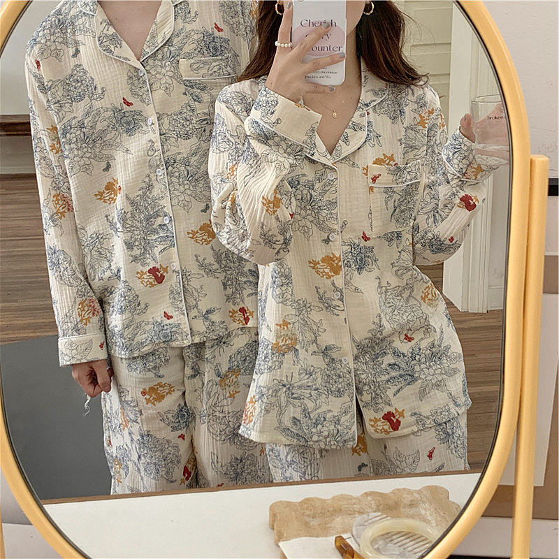 드로잉 긴팔 겨울 커플 파자마 트왈드주이 명품 잠옷 홈웨어 세트