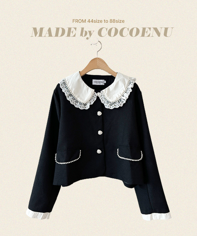 [MADE 4사이즈] 레이디카라 블랙 트위드투피스 세트 셋업 ( 빅사이즈 크롭자켓 레이스카라 플레어스커트 하객룩 하객원피스)