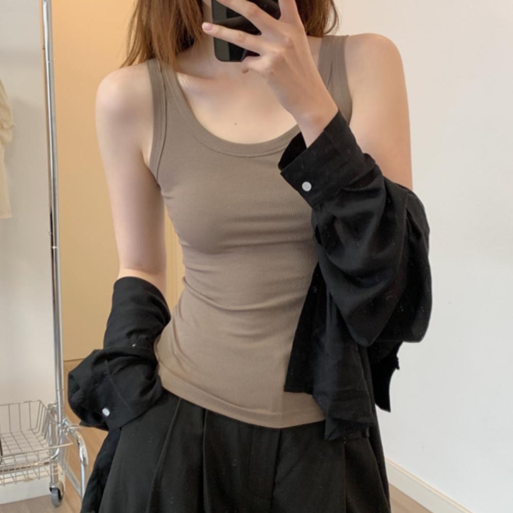 [BEST/당일출고 인기 쫀쫀 나시 4컬러] u넥 라운드넥 골지 나시 세미 크롭 부유방 커버 나시 유교걸 캡없는 이너 나시